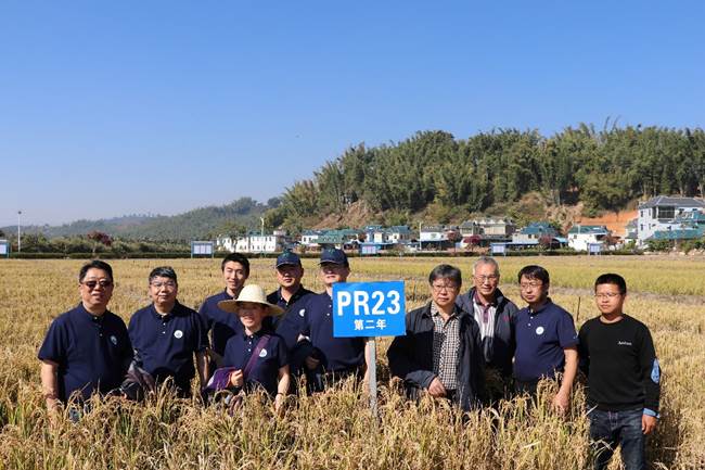 图 3 贵州考察组考察指导勐海多年生稻 23(PR23)示范