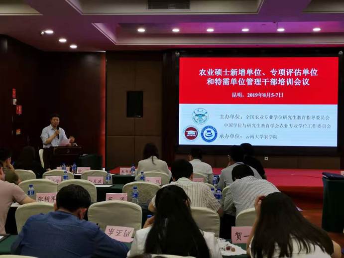 2019年8月6日-7日,农业硕士新增单位、专项评估单位、特需单位管理干部培训会议在云南昆明顺利召开。会议由全国农业专业学位研究生教育指导委员会、中国学位与研究生教育学会农业专业学位工作委员会主办,williamhill英国官网承办。来自全国28所高校的农业硕士新增单位、专项评估单位及特需单位的特邀代表、培养单位代表参加了会议。