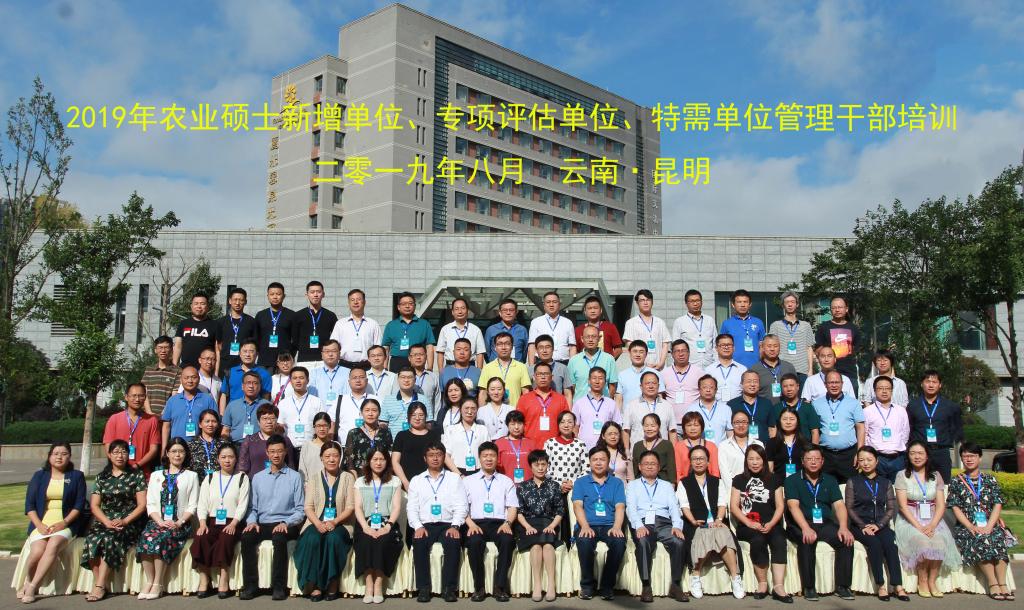 由全国农业专业学位研究生教育指导委员会和中国学位与研究生教育学会农业专业学位工作委员会主办、云南大学承办的“农业硕士新增单位、专项评估单位、特需单位管理干部培训会”于2019年8月5-8日在云南昆明(呈贡)圆满举行。