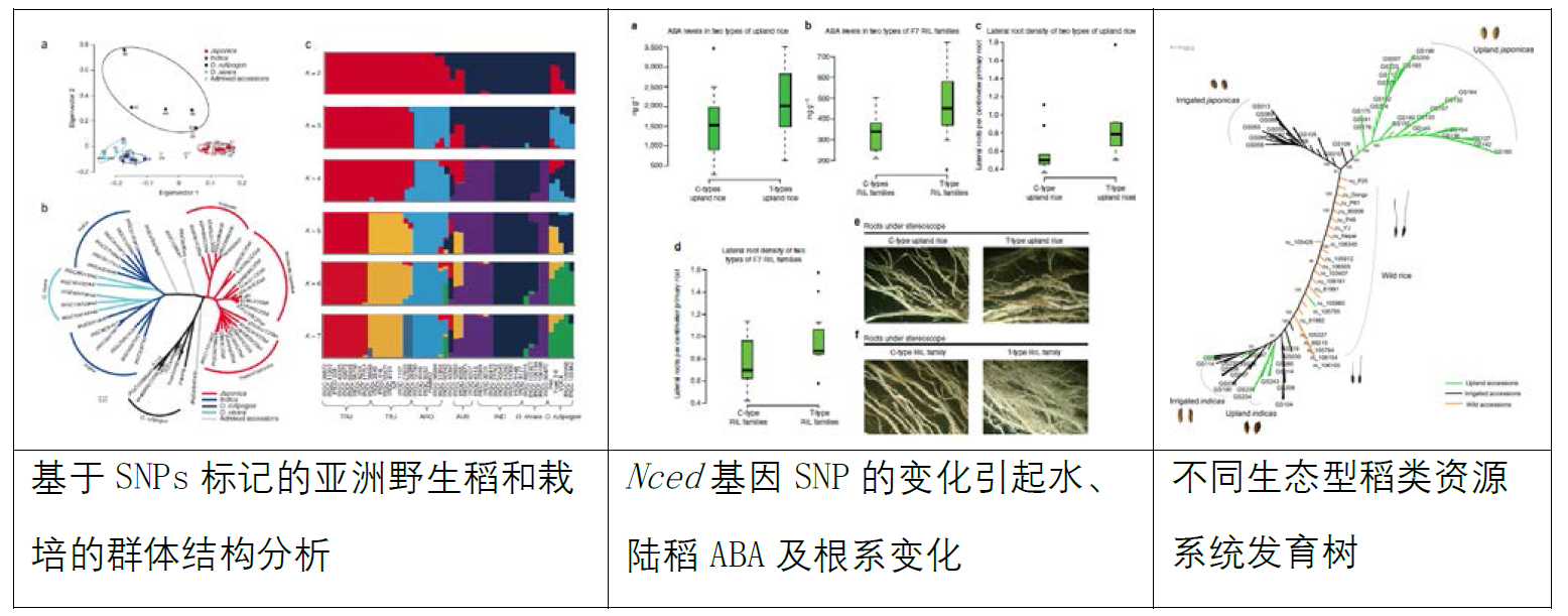 该项目找到了650万在亚洲野生稻和栽培稻中高可靠度的SNPs以及一大批基因组结构变异,从基因组变异角度支持粳稻和籼稻有独立的起源;鉴定出的受人工选择的基因,支持和佐证了后来不同研究团队的工作;发现一个水陆稻重要的SNP突变导致脱落酸代谢途径中限速酶基因Nced的功能改变进而影响其陆生适应性的遗传机制;创新性提出的改良品系标签位点分析(Elite variety tag SNP analysis, ETAS analysis)为大规模鉴定人工改良品系中重要的但又稀缺的优良基因提供了新方法。