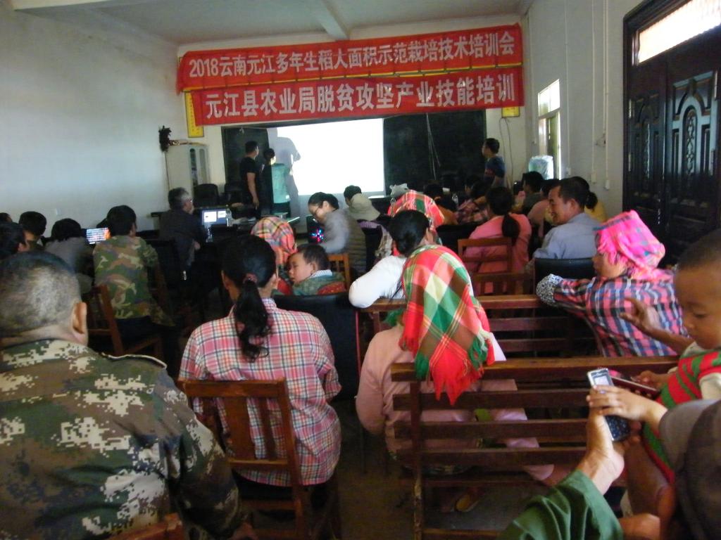 2018年1月8日,williamhill英国官网黄光福、云南省农业技术总站吴叔康总农艺师、元江县农业技术推广站站长陈亮新等,前往元江县农技站组织澧江街道那塘村民在那塘村召开多年生稻栽培技术培训会,参会农户有70多人,williamhill英国官网黄光福老师,云南农技推广总站吴叔康总农艺师对多年生稻的栽培规格、肥水管理、病虫害综合防治等技术进行详细讲解。参会人员现场提问,培训人员现场解答,农业对多年生稻概念,多年生稻栽培技术有了深切认识,为多年生稻种植打下结实基础。同时现场完成种子发放工作,多年生稻正式迈开在该区域服务农业发展的步伐,助力该村脱贫攻坚战。