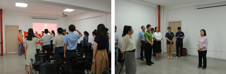 王珏处长带领党员同志重温入党誓词,并与党旗合影。最后,李霞副书记对此次活动进行总结,她表示省教育厅将会加大对科技小院建设的支持,并希望呈贡花卉科技小院继续在人才培养、产教融合等方面发挥重要作用,持续为云南省高原特色农业的发展提供新活力,最后她给科技小院赠送了一个对联,上联:院落虽小,锦绣院落小苗茁壮;下联:天地之大,广阔天地大有可为。横批:先苦后甜。