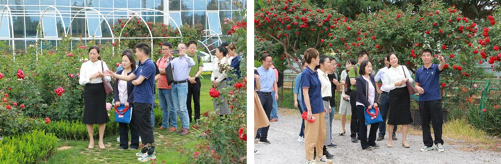 呈贡花卉科技小院由教育部办公厅、农业农村部办公厅和中国科协办公厅立联合立项支持,由云南大学与云南省农业科学院花卉研究所国际花卉创新中心共建。吴学尉教授带领大家参观了花卉科技小院斗南景观月季,并向一行人介绍了云南月季产业的发展情况以及目前科技小院的一些研究成果。