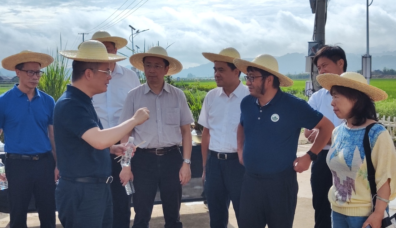 2023年8月22-23日,国家自然科学基金委员会(NSFC)副主任张学敏院士一行到云南大学西双版纳科技小院实地调研多年生稻科技创新工作。二十多年来,在NSFC项目长期、连续支持下,云南大学多年生稻创制工作取得了重要进展。调研组一行在现场了解多年生稻育种创新、规模化种植、田间试验和有关基础研究情况。在调研座谈会上,多年生稻团队负责人胡凤益汇报了“基于‘科技小院‘融合科学研究、人才培养、国际合作、乡村振兴、服务国家需求”多年生稻创制的研究工作,以杂交水稻全国重点实验室主任柏连阳院士为首的专家组肯定了多年生稻研究工作并提出了大规模实验需关注的科学问题建议。