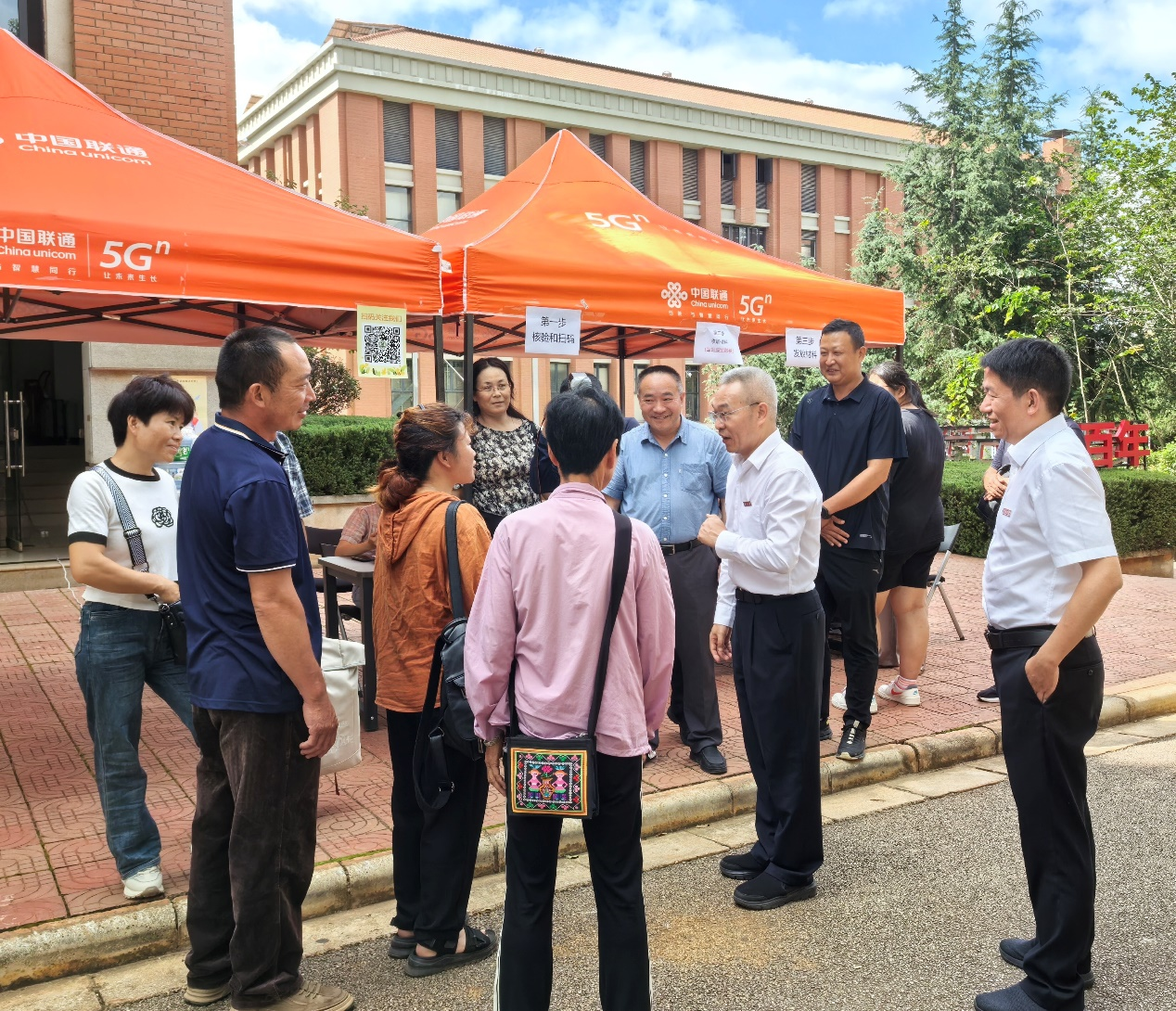 新生报到当天学校党委书记周学斌,党委副书记、常务副校长马文会,党委副书记张玮、吴建德等校领导来到学院迎新点欢迎刚入校的新生,与新生及新生家长们亲切交流并看望慰问参加迎新工作的志愿者和师生们。