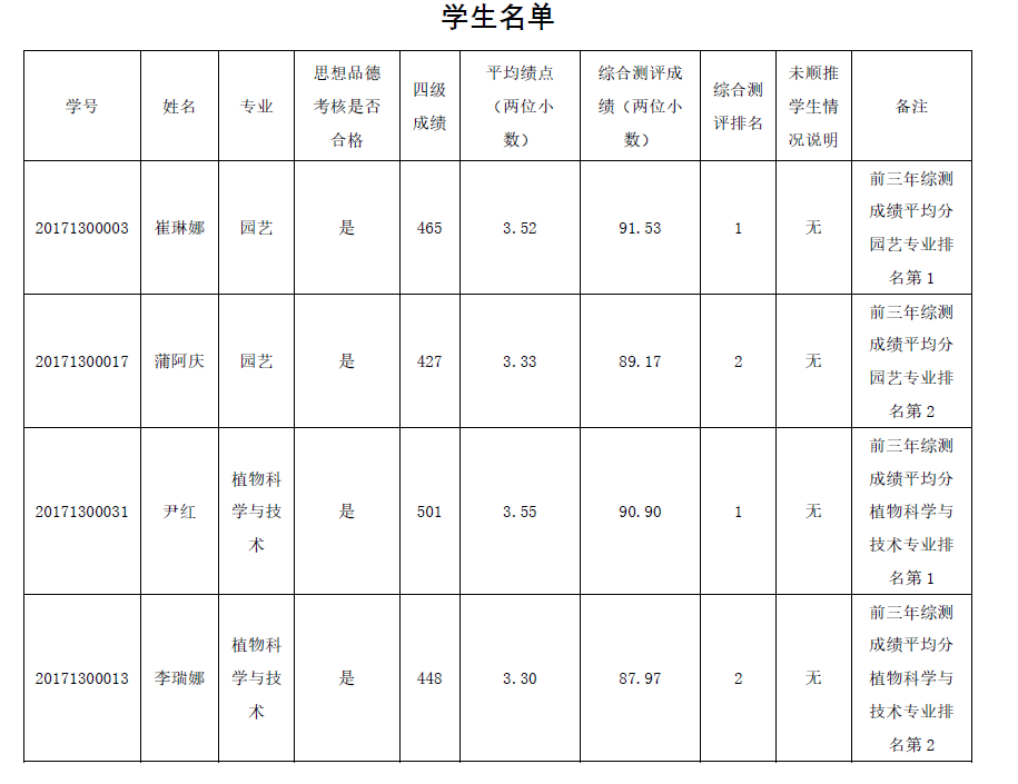 根据教育部《关于进一步规范和加强推荐优秀应届本科毕业生免试攻读研究生工作的通知》(教学厅[2020]12号)、《关于做好2021年推荐优秀应届本科毕业生免试攻读研究生工作的通知》(教学司函[2020]38号)精神,williamhill英国官网按照《云南大学2021年推荐优秀应届本科毕业生免试攻读研究生工作管理办法》要求,在学生本人申请、民主推荐、公开评选的基础上,学院推免生遴选工作小组本着公开、公平、公正的原则,严格按推荐条件择优确定初选名单。现将williamhill英国官网2021年免试攻读研究生拟推荐名单公示如下。如有异议,请于2020年9月30日以前到学院办公室反映,联系电话:13308853495