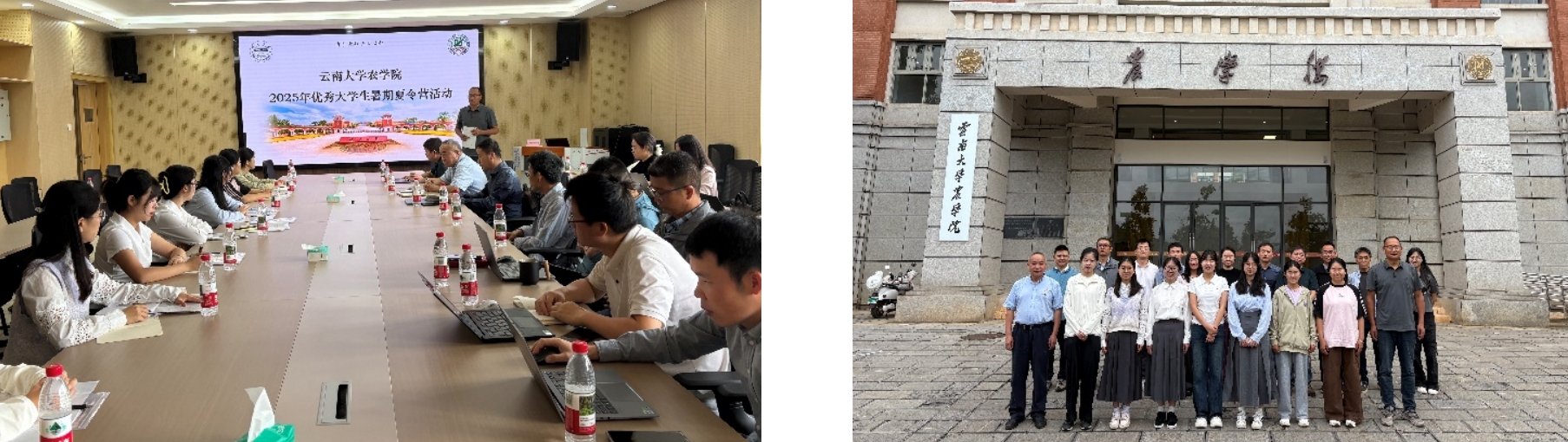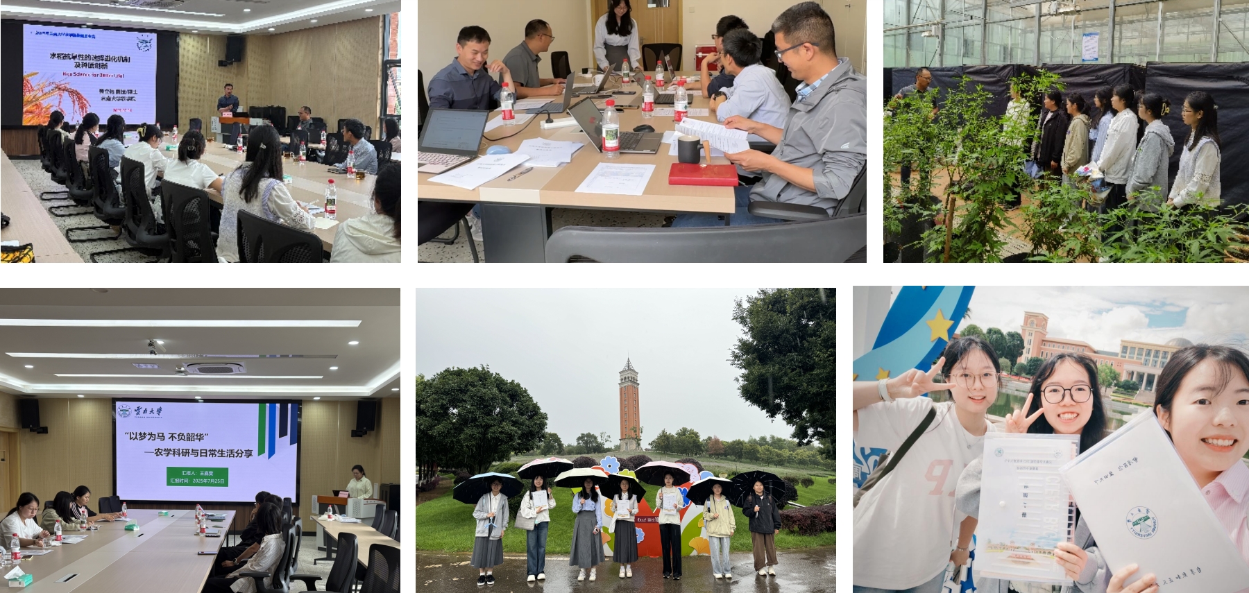 夏令营期间,学院精心安排了多项学术活动。各科研团队负责人系统介绍了团队的研究方向和最新进展,帮助营员全面了解学院的科研实力。营员们还参观了学院现代化温室和实验平台,近距离感受农业科技的魅力。26日下午,学院组织了综合能力测试,全面考察营员的专业素养和科研潜力。27日上午,学院邀请优秀在校生代表王嘉雯、郭斌和毕业生代表杨静与营员们进行深入交流。他们结合自身经历,分享了科研学习、校园生活和职业发展的宝贵经验,为营员们提供了全方位的指导。此外,通过校园标志建筑物打卡等活动是营员们切身感受到了云大独特的学术氛围和文化魅力。