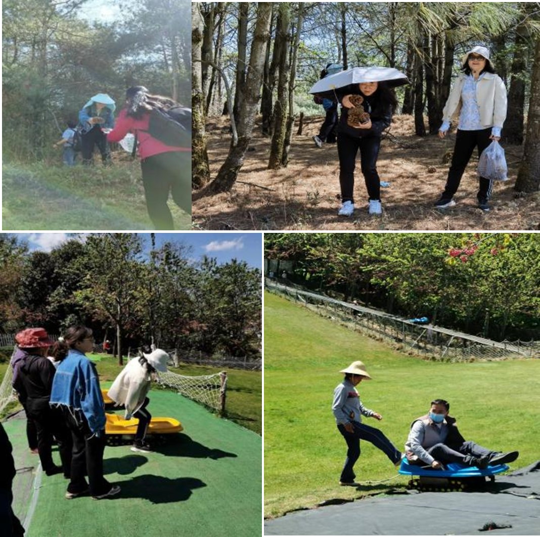 图2 教职工采松球及滑草场景