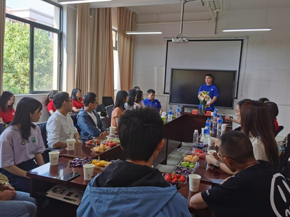副院长王贤智老师代表学院向返校校友介绍了近年来学院的变化和取得的发展成果。彭城同学代表在校生发言,他向校友表示热烈欢迎,并表达了向优秀校友学习的决心。(图4)
