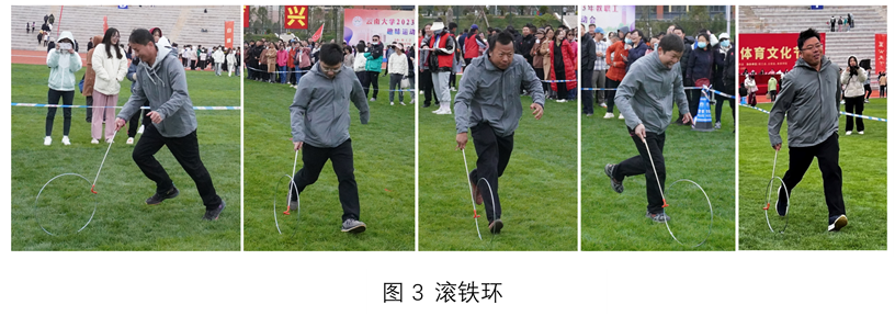 在随后举行的教职工趣味运动会中,williamhill英国官网教职工参加了疯狂毛毛虫、抱球接力跑、滚铁环、同心鼓等项目的比赛。参赛选手们配合默契,出色的完成了各项比赛(图2-5)。